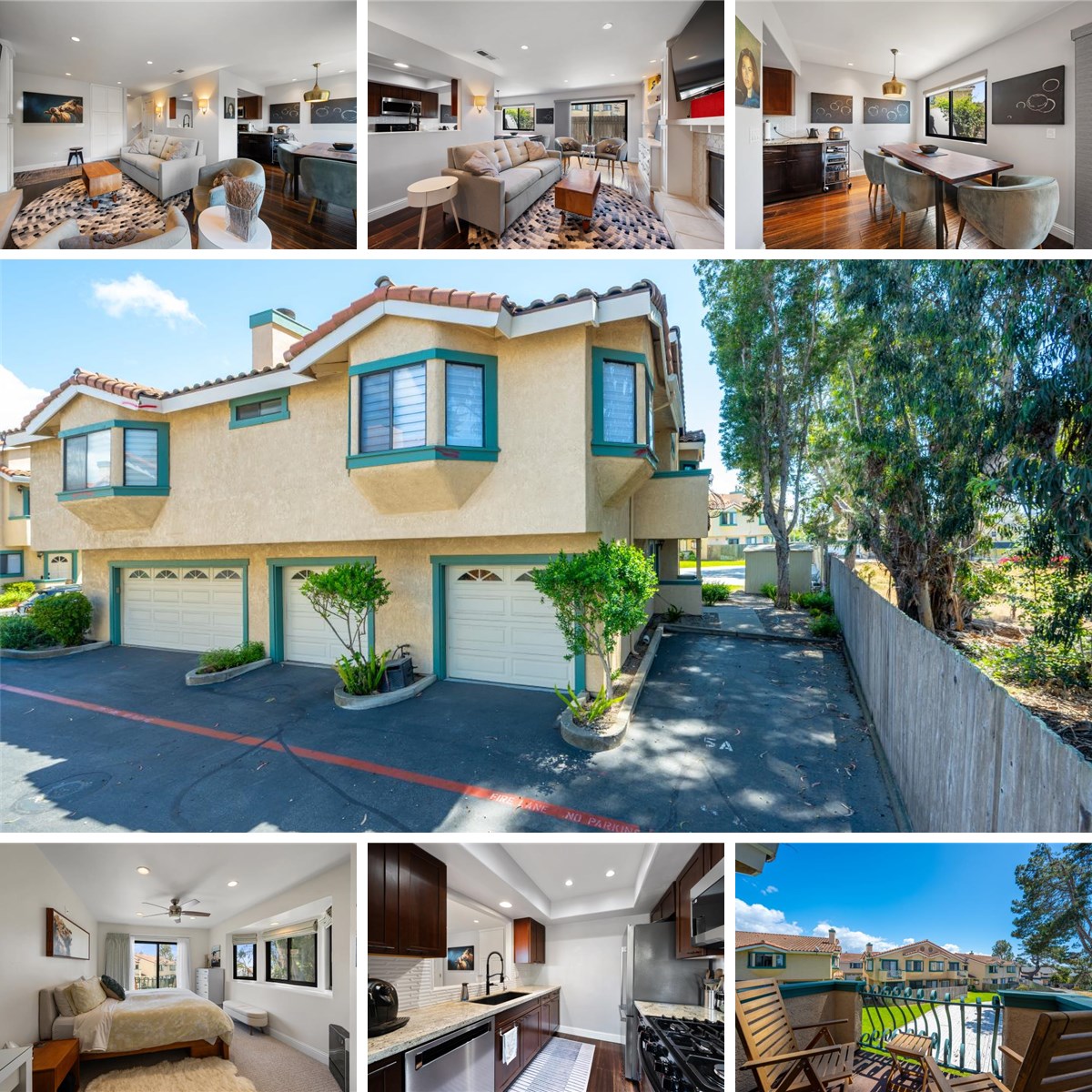 Nestled within the Encanto Ridge community, this beautifully updated unit offers a sense of privacy and tranquility from the moment you step inside. The living room is warm and inviting, featuring a custom wall unit and a charming fireplace that naturally draws you in. Just beyond the main living area, a private garden patio serves as an easy extension of the home. This is ideal for relaxing mornings, enjoying a midday pause, or unwinding in the evening. The kitchen has been tastefully refreshed with granite countertops, a farmhouse sink, soft-close cabinetry, and stainless steel appliances, blending style with everyday functionality. Throughout the home, you'll find thoughtful upgrades, including hand-textured walls and beautifully updated bathrooms, giving the space a refined, personalized feel. A conveniently located guest bathroom on the main level enhances the home’s comfort and accessibility.